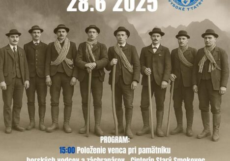 Pozývame Vás na sviatok horských vodov dňa 28.6.2025 v Starom Smokovci. Program začína 15:00 položením venca pri pamätníku horských vodcov a záchranárov na cintoríne v Starom Smokovci.